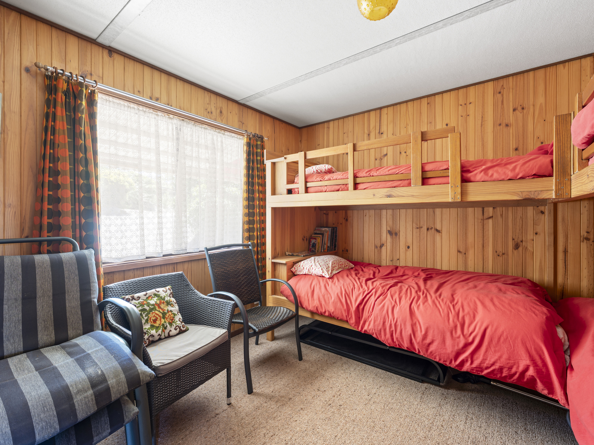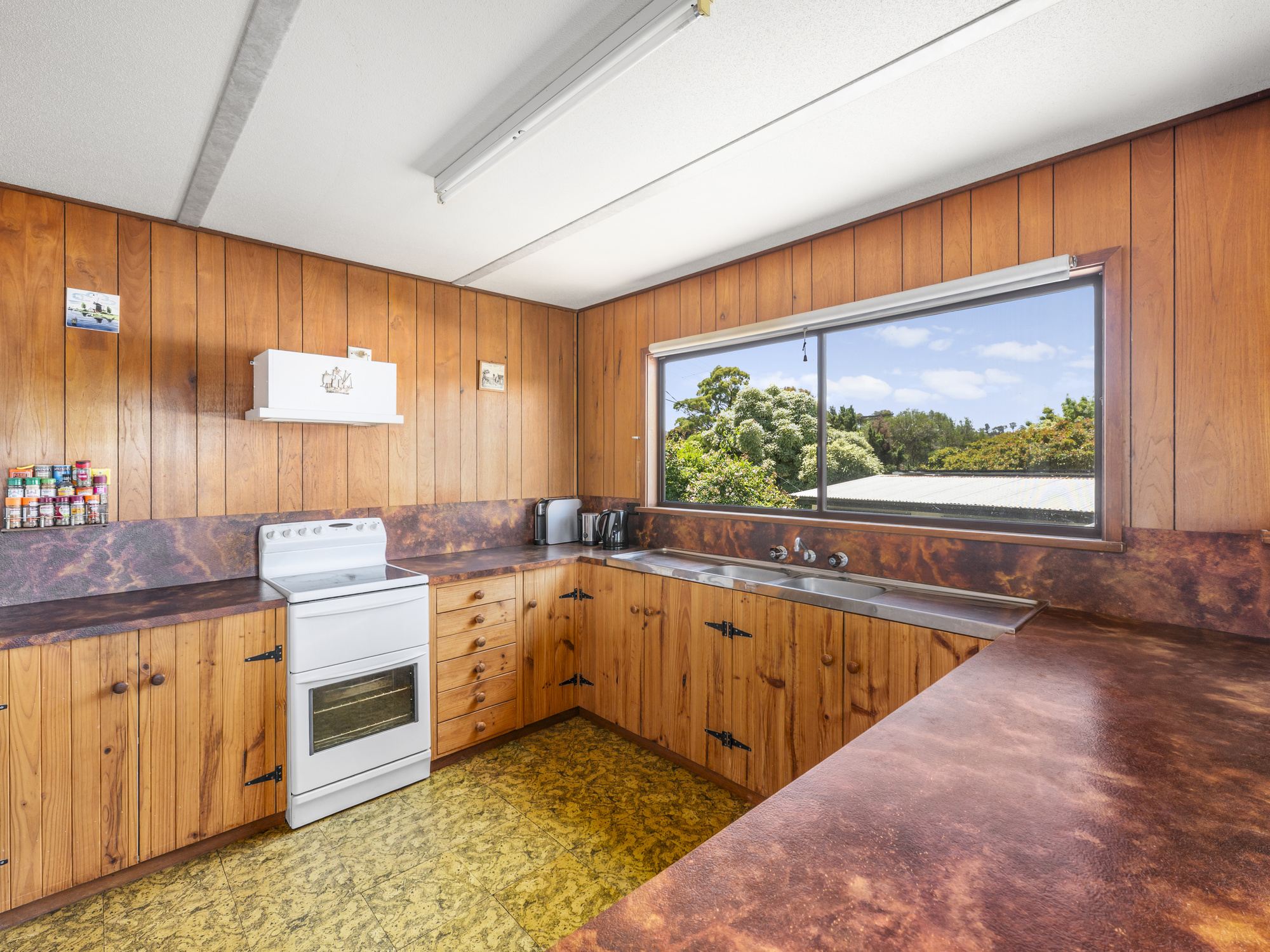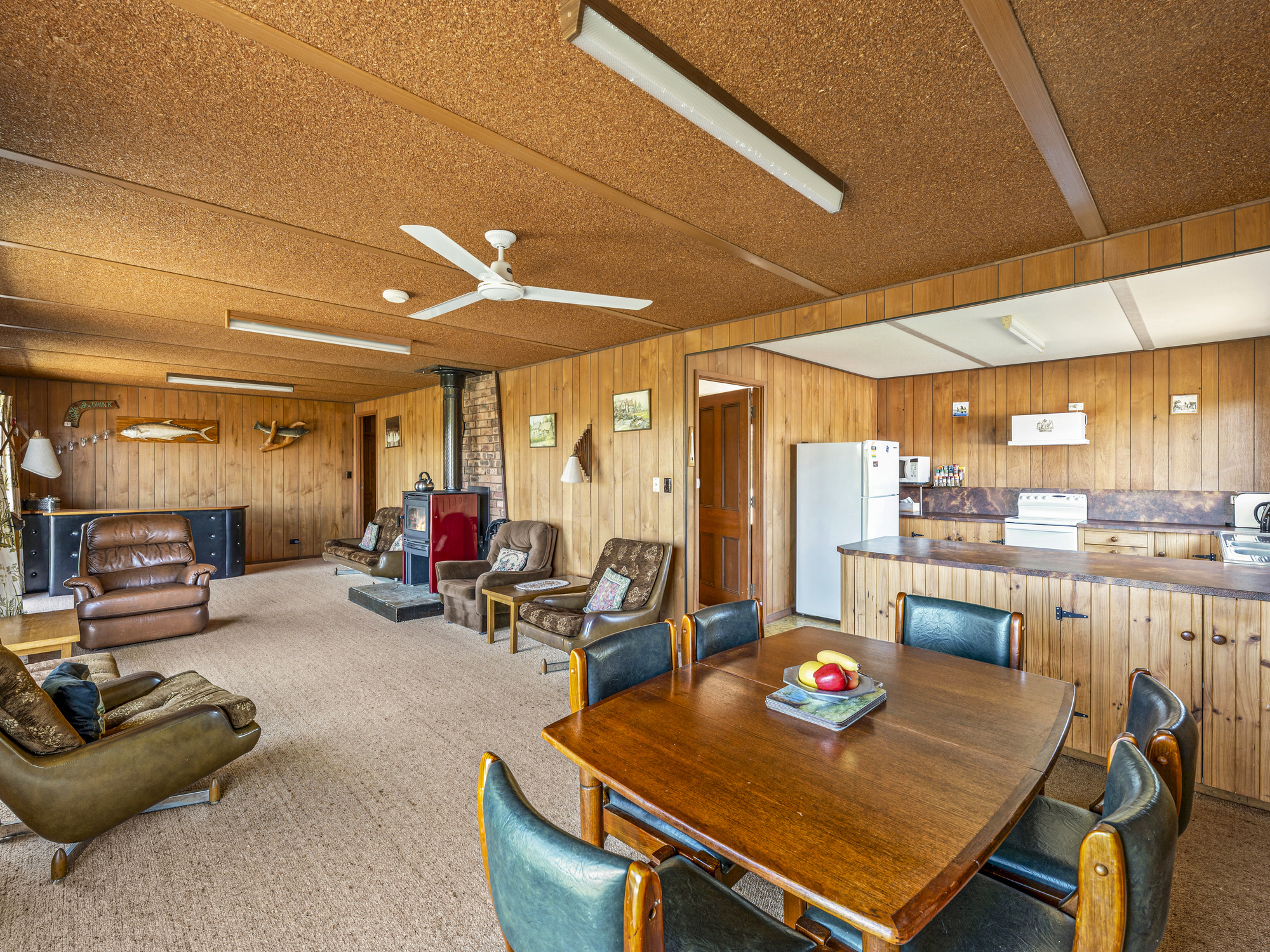 The main living zone is warm and welcoming, with a bright open plan layout that encourages you to slow down and enjoy the outlook. Sliding doors open onto the verandah, creating an ideal spot to unwind and take in the changing colours of the surrounding hills. The large kitchen provides excellent storage and bench space, and even catches a glimpse of the lake from the window.