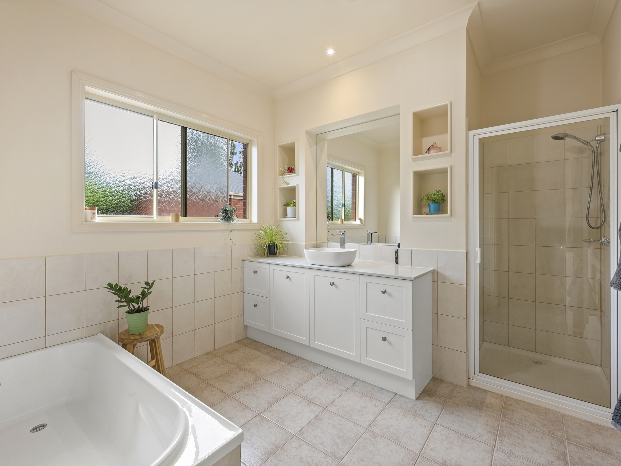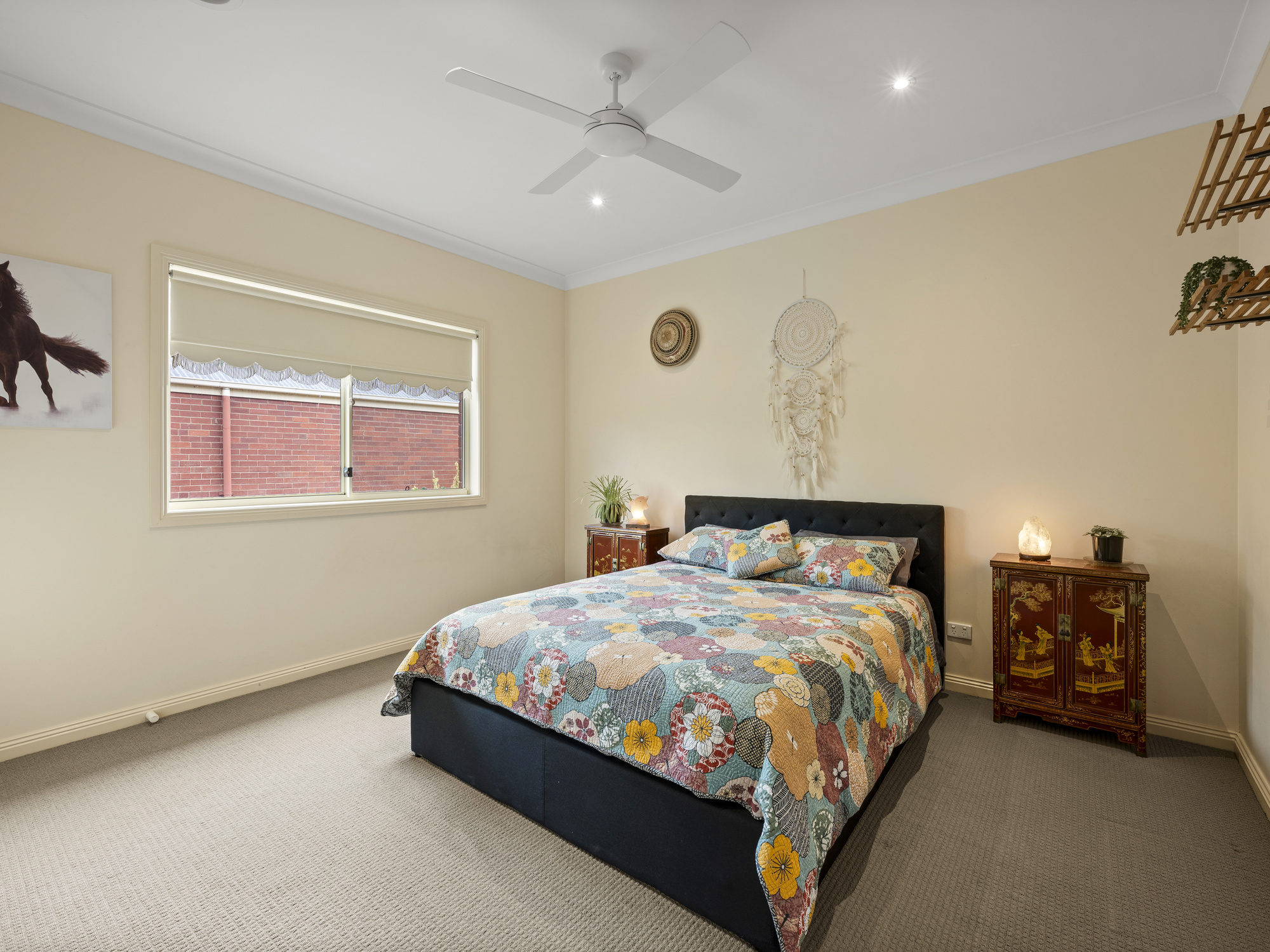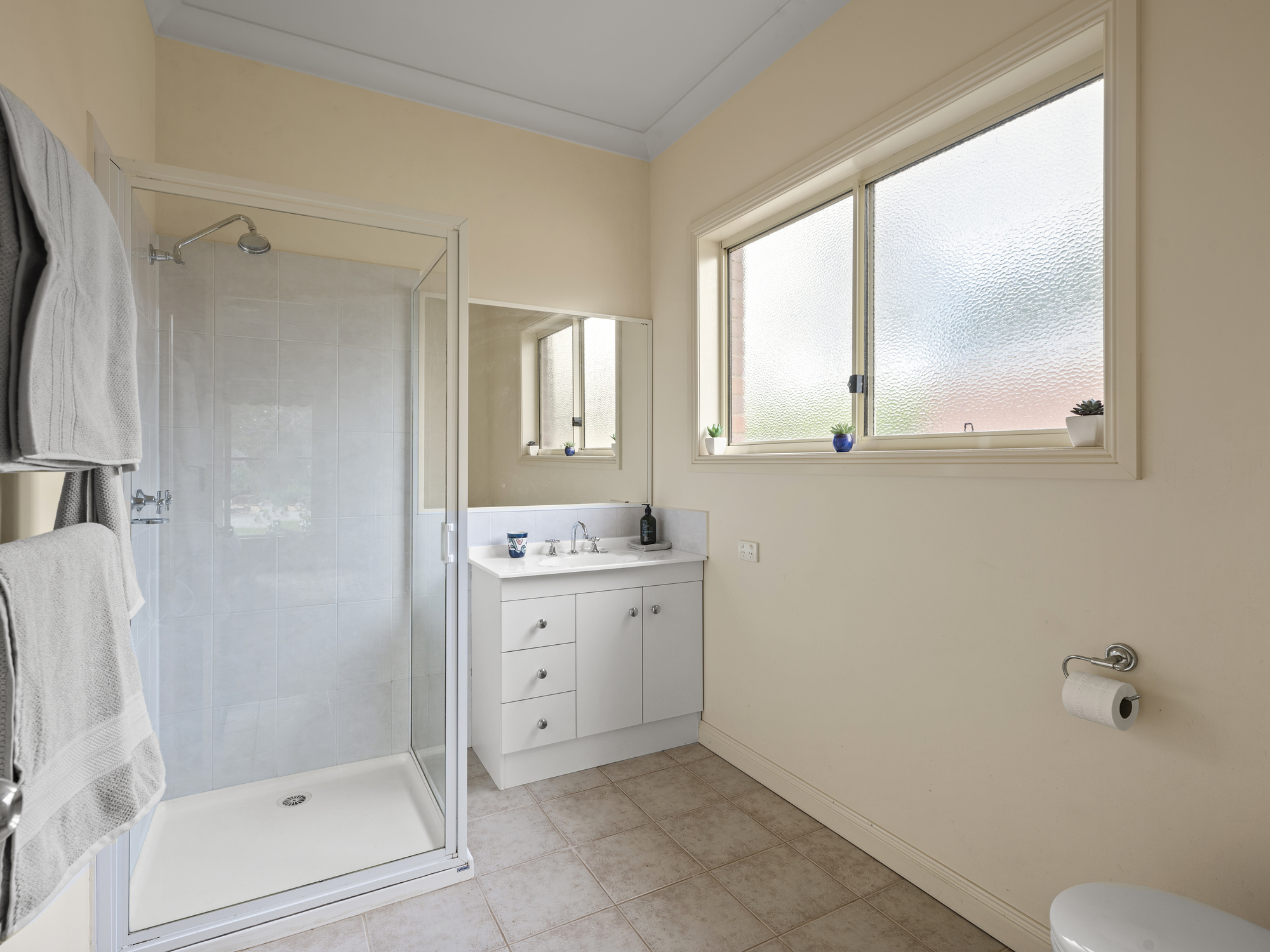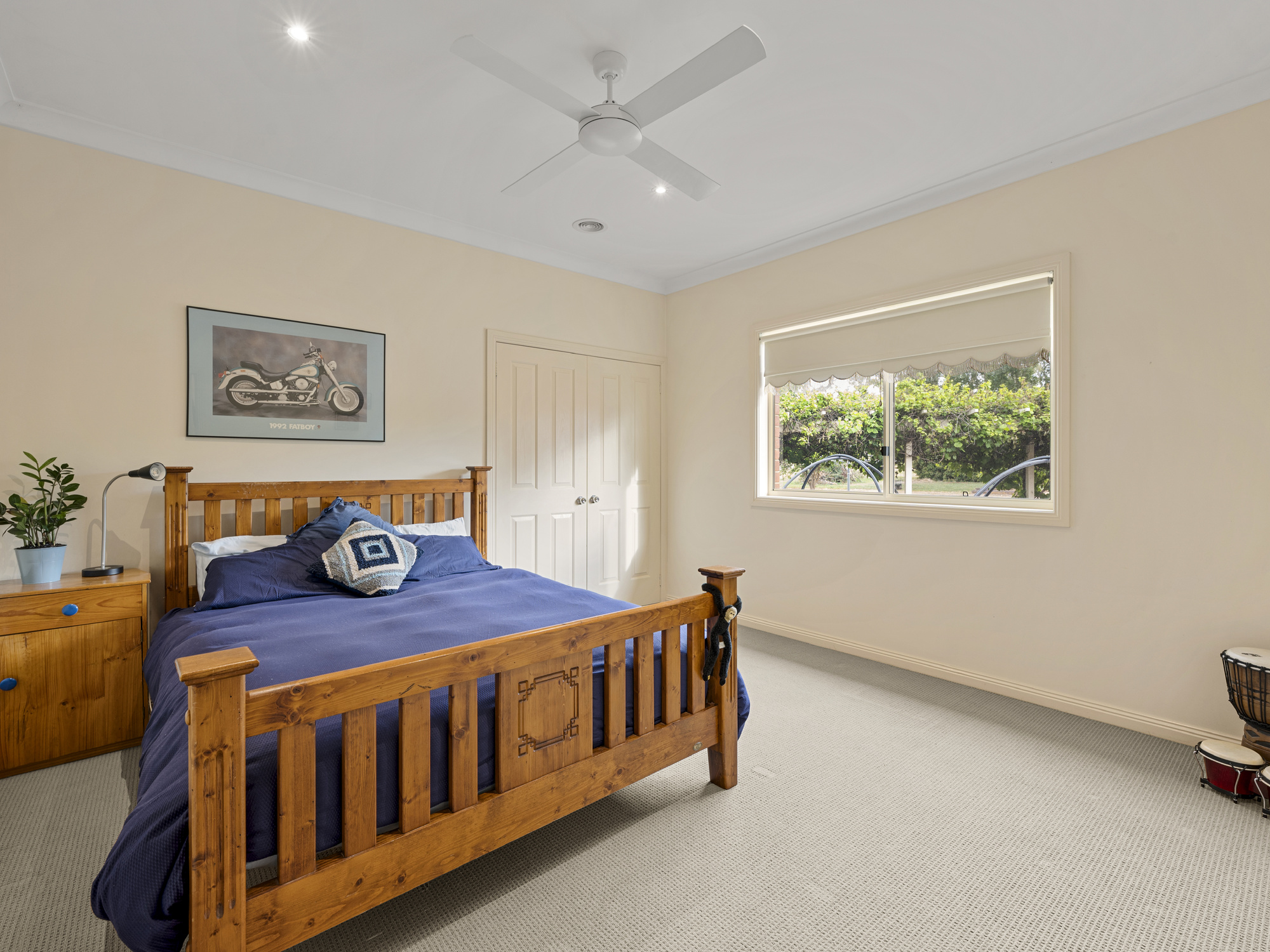 The main bedroom is privately positioned and features a walk-in robe and full ensuite, while two additional toilets service the rest of the home for everyday family convenience.