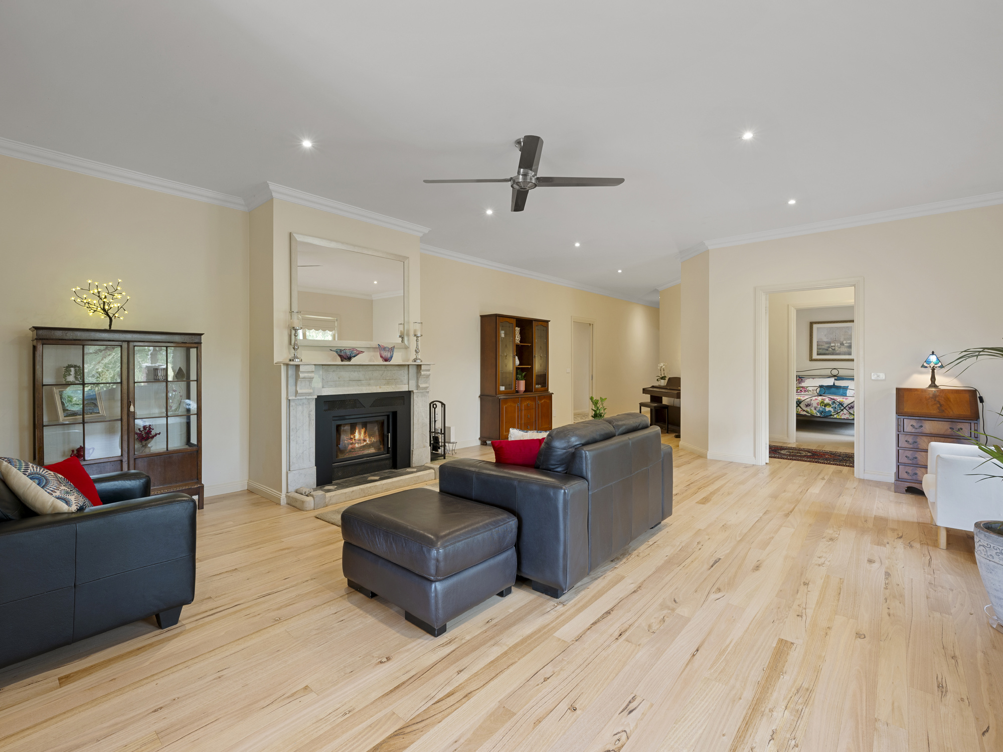 At the heart of the property sits a substantial four-bedroom brick home of approximately 29 squares, built by a respected local builder and offering confidence in its quality, proportions and enduring design. Three separate living areas, high ceilings and polished hardwood floors create a strong sense of space and flow. Two Euro fireplaces add warmth and character, with one framed by a marble mantle.