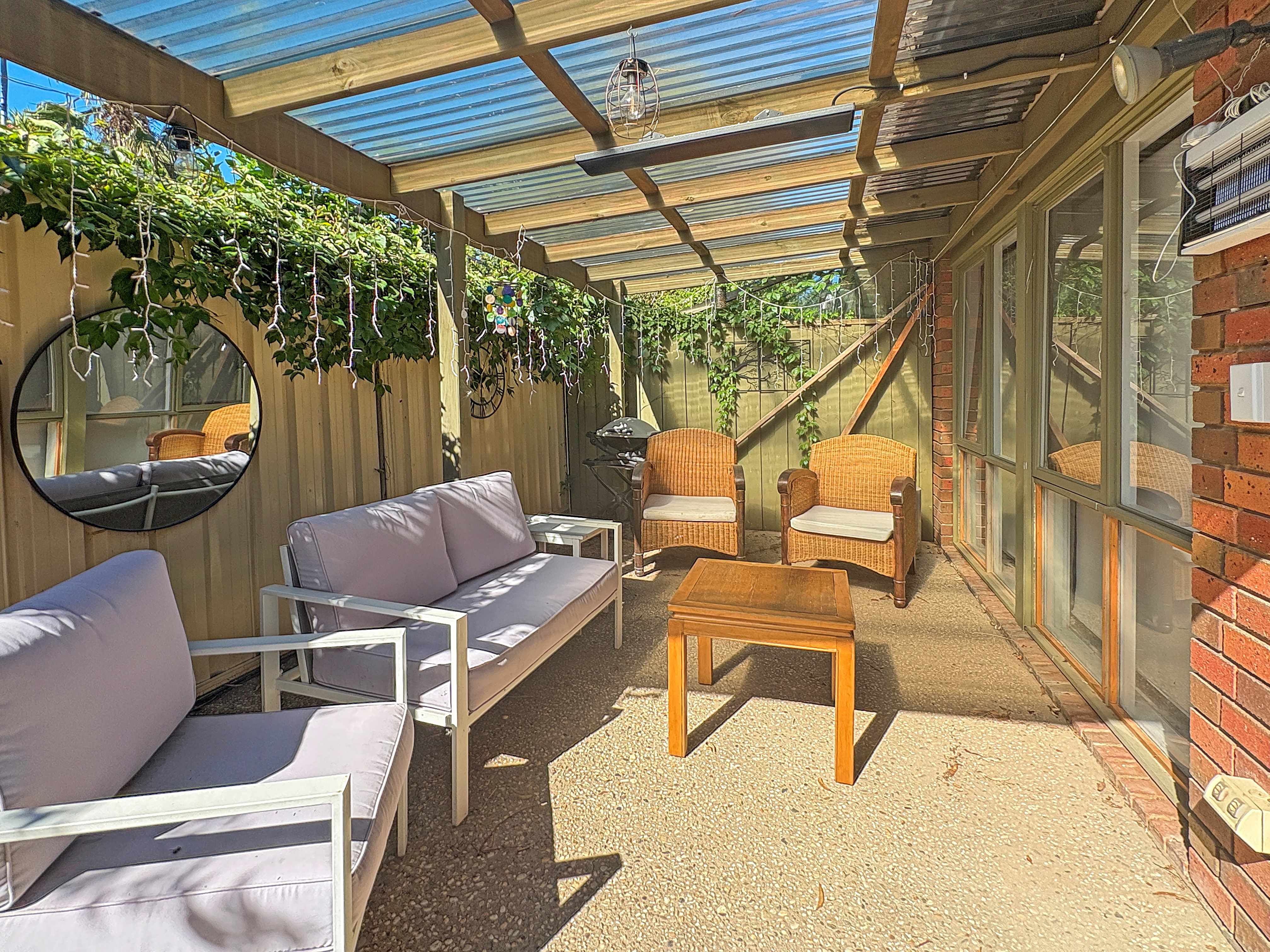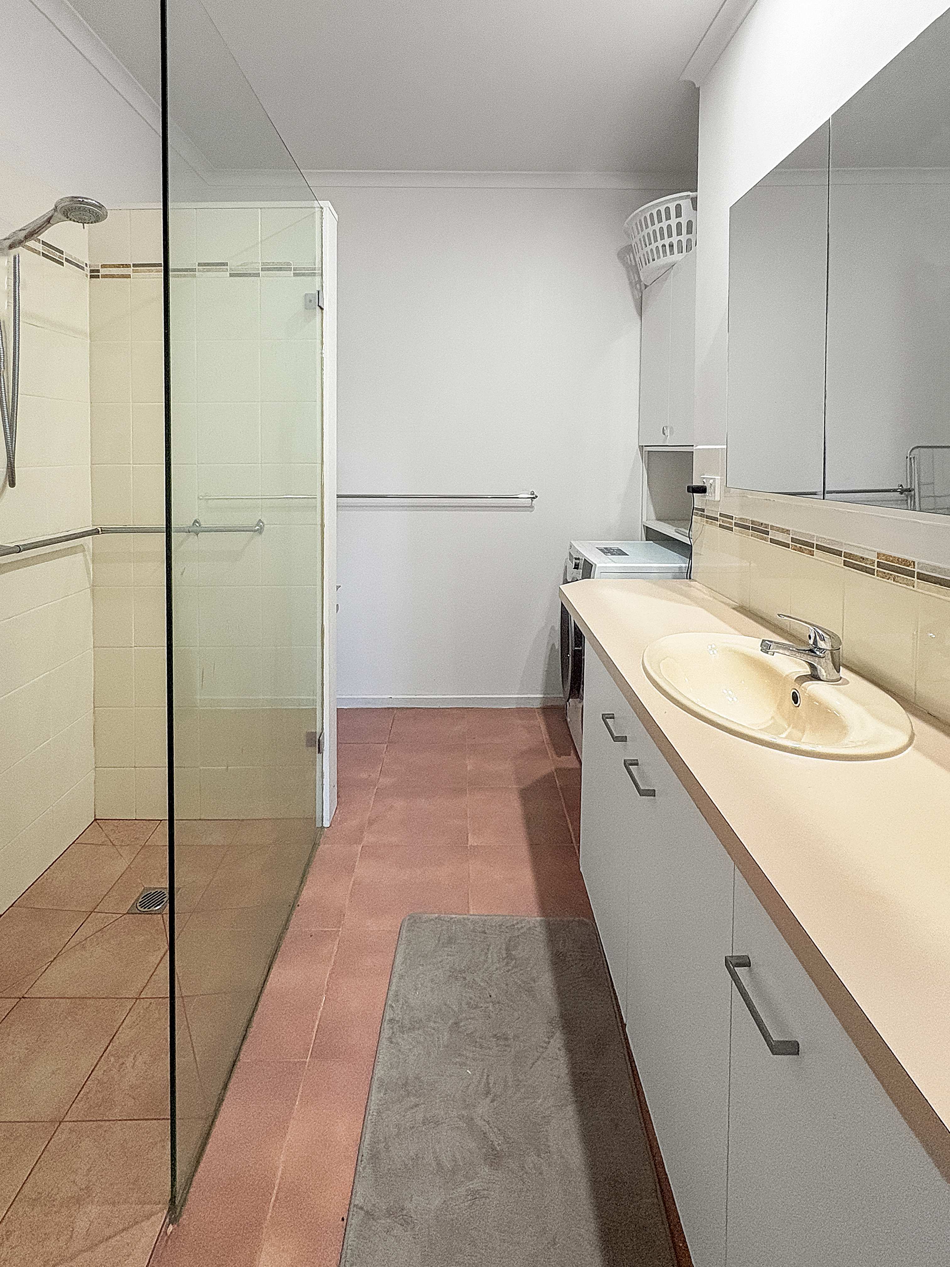 For practicality, the home includes a combined bathroom and laundry with a walk-in shower, along with the added convenience of a separate toilet.